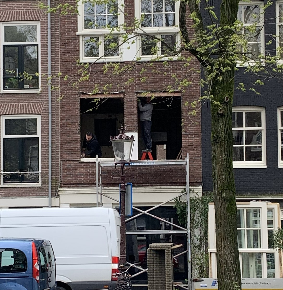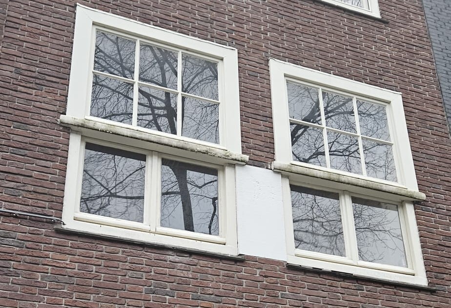 Oude kozijnen aan de Egelantiersgracht, hout verrot en enkel glas. Tijd voor een upgrade! Nieuwe kozijnen geplaatst en afgewerkt. Hetzelfde uiterlijk als origineel maar met triple HR+++ glas. Originele stijl met isolatie voorwaarden van 2026. | Oude kozijnen verwijderd |